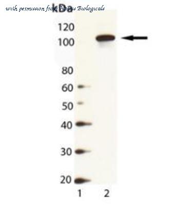 Western Blot: Hsp104 Antibody [NBP1-97473] - Analysis of HSP104 (yeast), pAb: Lane 1: MW Marker, Lane 2: Yeast Cell Lysate.