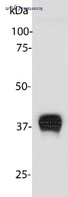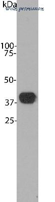 Western Blot: Aldolase C Antibody (4A9) [NBP2-25145] - Blots of crude cow cerebellum homogenate. The 4A9 clone binds strongly and cleanly to a band at about 40 kDa.