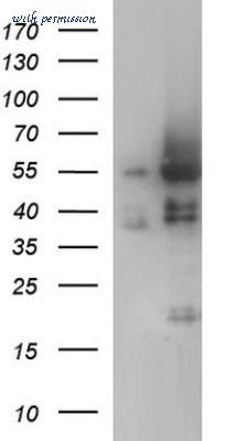 application: western blot, immunohistochemistry, immunohistochemistry - paraffin section - mouse monoclonal (OTI1F11)