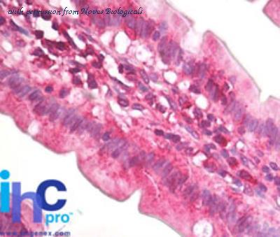 Immunohistochemistry-Paraffin: eIF4A2 Antibody [NBP2-24529] - Formalin-fixed, paraffin-embedded human small intestine stained with eIF4A2 antibody at 10 ug/ml. Staining of formalin-fixed tissues is enhanced by boiling tissue sections in 10 mM sodium citrate buffer, pH 6.0 for 10-20 min followed by cooling at RT for 20 min.