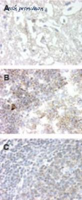 Immunohistochemistry-Paraffin: GPR83 Antibody [NBP2-24515] - Analysis of frozen brain (neurons & glia, image A), frozen tonsil tissue (lymphocytes, image B), and formalin-fixed paraffin embedded tonsil tissue using GPR83 antibody at 20 ug/ml.