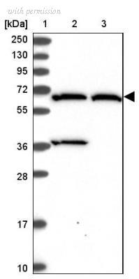 Western Blot: ADAMTSL5 Antibody [NBP2-41120] - Western blot analysis of ADAMTSL5 in human skeletal muscle tissue lysate with ADAMTSL5 antibody at 1 ug/mL.