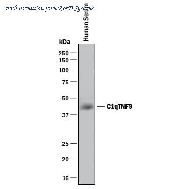 Detection of Human CTRP9/C1qTNF9 antibody by Western Blot.