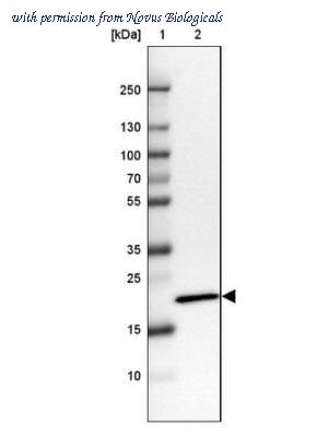 Western blot. All lanes: C20orf27 antibody at 6 ug/ml. Lane 1: HCT116 whole cell lysate. Lane 2: MDA-MB-231 whole cell lysate. Secondary. Goat polyclonal to Rabbit IgG at 1/10000 dilution. Predicted band size: 20,22 kDa. Observed band size: 20 kDa.