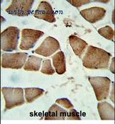 Immunohistochemical analysis in formalin-fixed and paraffin-embedded human skeletal muscle followed by peroxidase-conjugated to the secondary antibody, followed by DAB staining.