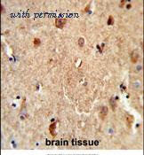 Immunohistochemical analysis in formalin-fixed and paraffin-embedded human brain tissue followed by peroxidase-conjugated to the secondary antibody, followed by DAB staining.