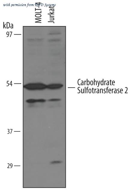 Detection of Human Carbohydrate Sulfotransferase 2/CHST2 antibody by Western Blot.