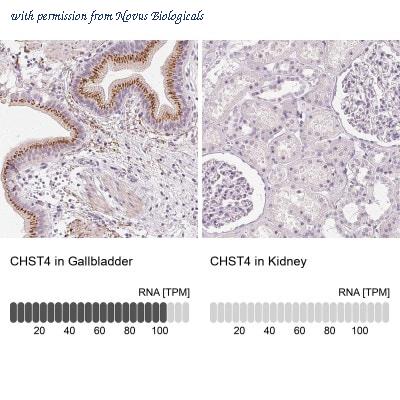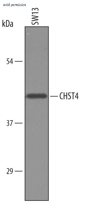 Detection of Human Carbohydrate Sulfotransferase 4/CHST4 antibody by Western Blot.