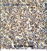 Immunohistochemical analysis in formalin fixed and paraffin embedded human lymph tissue followed by peroxidase conjugation of the secondary antibody and DAB staining.