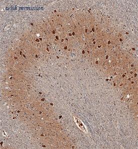 17ss-HSD14/HSD17B14 antibody in Human Brain by Immunohistochemistry (IHC-P).