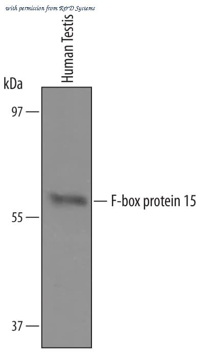 Detection of Human F-box protein 15/FBXO15 antibody by Western Blot.