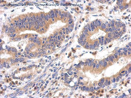 Immunohistochemical analysis of paraffin-embedded colon ca using FPGT (PA5-31546) antibody at 1:500 dilution.