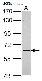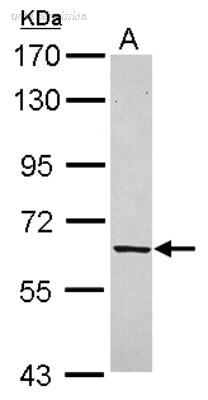 Western Blot analysis of FPGT using anti-FPGT Polyclonal Antibody (PA5-31546), in A431 Cell Lysate (30 ug of cell lysate) and at a dilution of 1:2000.