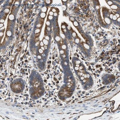 Immunohistochemistry-Paraffin: HSD17B12 Antibody [NBP1-81567] - Staining of human colon shows moderate to strong cytoplasmic positivity in glandular cells.