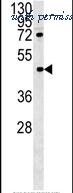 Western blot analysis of PYHIN1 in MDA-MB435 cell line lysates using 35ug per lane of antibody.