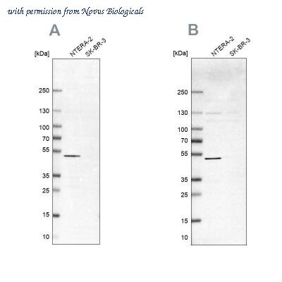 Western Blot: IST1 Antibody [NBP2-33720] - Analysis using Anti-IST1 antibody NBP2-33720 (A) shows similar pattern to independent antibody NBP1-87676 (B).