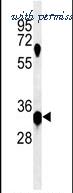 Western blot analysis of KCTD1 in NCI-H460 cell line lysates using 35ug per lane of antibody.