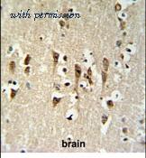 Immunohistochemical analysis in formalin fixed and paraffin embedded brain tissue followed by peroxidase conjugation of the secondary antibody and DAB staining.