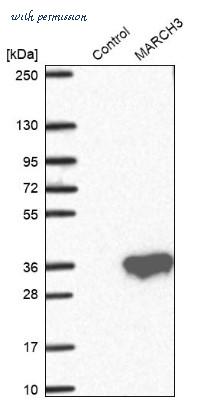 - synonym:MARCH-III; RNF173; E3 ubiquitin-protein ligase MARCH3; RING finger protein 173; RING-type E3 ubiquitin transferase MARCH3; membrane associated ring finger 3; membrane-associated RING-CH protein III; membrane-associated ring finger (C3HC4) 3, E3 ubiquitin protein ligase