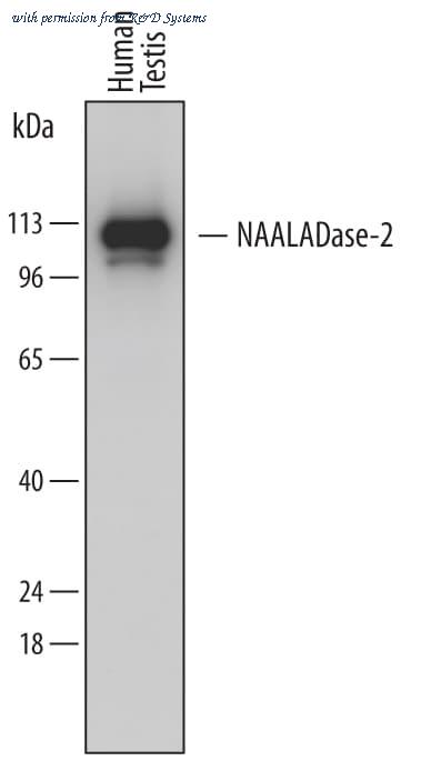 Detection of Human NAALADase-2/NAALAD2 antibody by Western Blot.