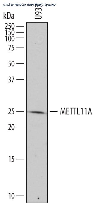 Detection of Human a-N-terminal Methyltransferase 1A/ METTL11A antibody by Western Blot.