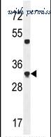 Western blot analysis of OR5L2 in 293 cell line lysates using 35ug per lane of antibody.
