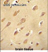 Immunohistochemical analysis in formalin fixed and paraffin embedded human brain tissue followed by peroxidase conjugation of the secondary antibody and DAB staining.
