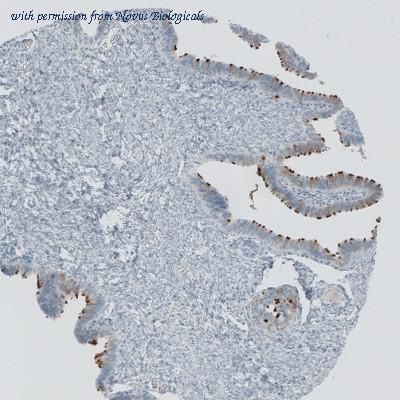 Immunohistochemistry-Paraffin: RSPH9 Antibody [NBP1-86750] - Staining of human fallopian tube shows strong membranous positivity in glandular cells.