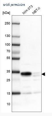 Western Blot: Thymidine Kinase 2 Antibody [NBP1-92505] - Analysis in mouse cell line NIH-3T3 and rat cell line NBT-II.