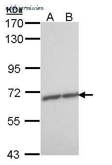 Western Blot analysis of ZNF223 using anti-ZNF223 Polyclonal Antibody (PA5-28894), in Hela Cell Lysate (30 ug of cell lysate) and at a dilution of 1:5000.