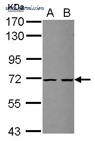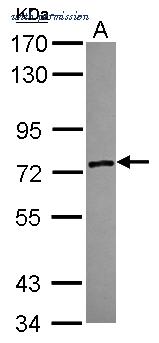 Western Blot analysis of ZSWIM2 using anti-ZSWIM2 Polyclonal Antibody (PA5-31308), in NT2D1 Cell Lysate (30 ug of cell lysate) and at a dilution of 1:1000.