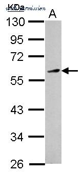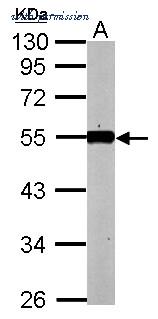Western Blot analysis of KLF12 using anti-KLF12 Polyclonal Antibody (PA5-28010), in Mouse Kidney (50 ug of cell lysate) and at a dilution of 1:1000.