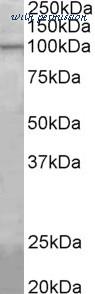 AGBL5 antibody (1 ug/ml) staining of Mouse Skin lysate (35 ug protein in RIPA buffer). Primary incubation was 1 hour. Detected by chemiluminescence.