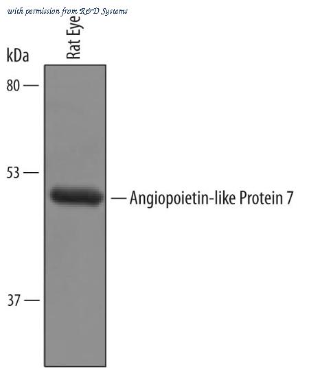Detection of Rat Angiopoietin-like Protein 7/ANGPTL7 antibody by Western Blot.