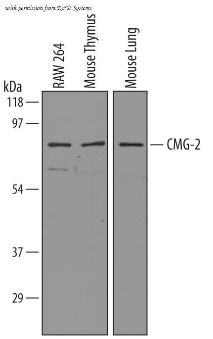 Detection of Mouse CMG-2/ANTXR2 antibody by Western Blot.