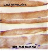 Immunohistochemical analysis in formalin fixed and paraffin embedded human skeletal muscle followed by peroxidase conjugation of the secondary antibody and DAB staining.