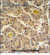 Immunohistochemical analysis in formalin fixed and paraffin embedded human hepatocarcinoma followed by peroxidase conjugation of the secondary antibody and DAB staining.