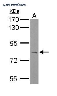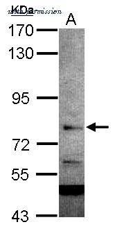Western Blot analysis of RC74 using anti-RC74 Polyclonal Antibody (PA5-30656), in IMR32 Cell Lysate (30 ug of cell lysate) and at a dilution of 1:1000.