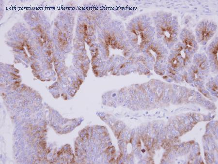 Immunohistochemical analysis of paraffin-embedded Colon ca using MAP7 (PA5-31782) antibody at 1:500 dilution.