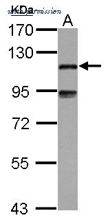 Western Blot analysis of MAP7 using anti-MAP7 Polyclonal Antibody (PA5-31782), in A431 Cell Lysate (30 ug of cell lysate) and at a dilution of 1:1000.