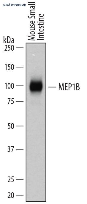 Detection of Mouse Meprin ss Subunit/MEP1B antibody by Western Blot.