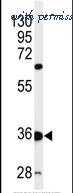 Western blot analysis of C12orf53 in mouse liver tissue lysates using 35ug per lane of antibody.