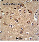 Immunohistochemical analysis in formalin fixed and paraffin embedded human brain tissue followed by peroxidase conjugation of the secondary antibody and DAB staining.