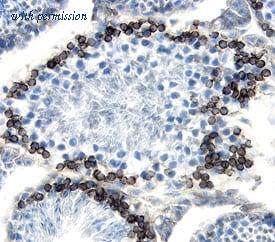 Endoglycan/PODXL2 antibody in Mouse Testis by Immunohistochemistry (IHC-Fr).