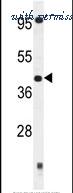 Western blot analysis of SLFNL1 in mouse bladder tissue lysates using 35ug per lane of antibody.