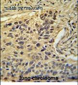 Immunohistochemical analysis in formalin fixed and paraffin embedded human lung carcinoma followed by peroxidase conjugation of the secondary antibody and DAB staining.