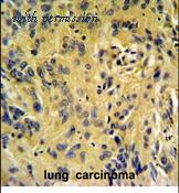 Immunohistochemical analysis in formalin fixed and paraffin embedded human lung carcinoma followed by peroxidase conjugation of the secondary antibody and DAB staining.