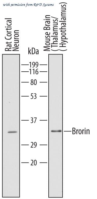 Detection of Mouse and Rat Brorin/VWC2 antibody by Western Blot.