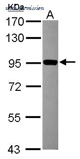 Western Blot analysis of ZNF598 using anti-ZNF598 Polyclonal Antibody (PA5-31409), in Raji Cell Lysate (30 ug of cell lysate) and at a dilution of 1:1000.