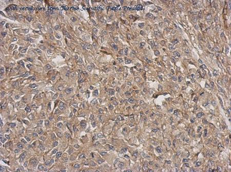Immunohistochemical analysis of paraffin-embedded U87 xenograft using ARPC5L (PA5-31754) antibody at 1:500 dilution.